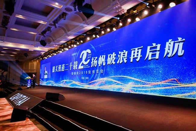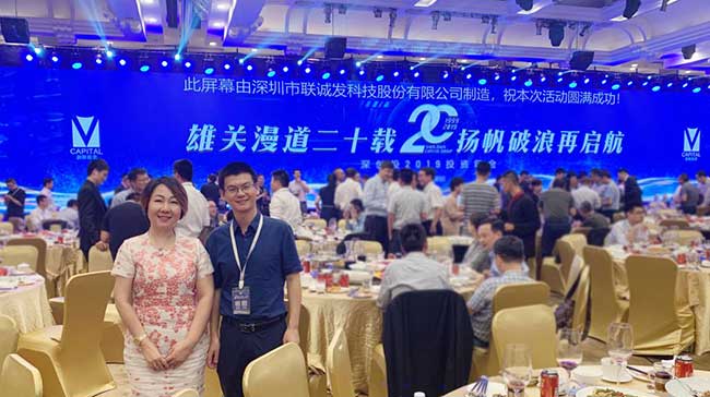 2019年8月25日,深创投2019年投资年会在深圳市华侨城洲际大酒店拉开了序幕,而kaiyun开云作为被投资企业及LED显示屏解决方案服务商出席此次投资年会,kaiyun开云200㎡的龙艺LED显示大屏幕更是为本次年会提供了极致的显示效果,优质的解决方案和产品得到了深创投的十分肯定。