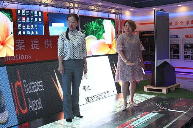 王立萍书记正在体验kaiyun开云P2.604镀膜地砖屏