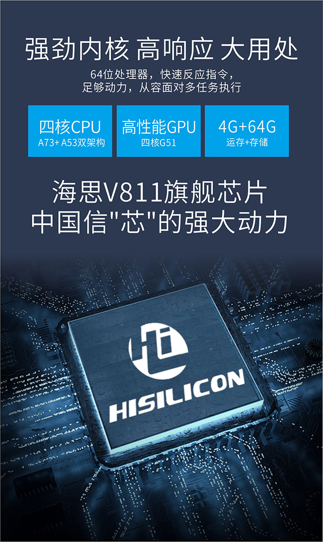 kaiyun开云智能终端一体机LTV2.0除了具有以上五个特点外,还拥有卓越的处理性能,它采用海思V811旗舰芯片,集成四核64位中央处理器、高性能四核显示芯片,拥有4G运行内存+64G存储,让一体机具有强大的动力,能快速反应处理指令,从容面对多任务操作。