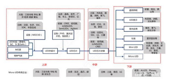 中国台湾厂商主要涉及蓝宝石加工、PSS处理。韩国依靠政府支持出现STC、Astek等蓝宝石大企业。