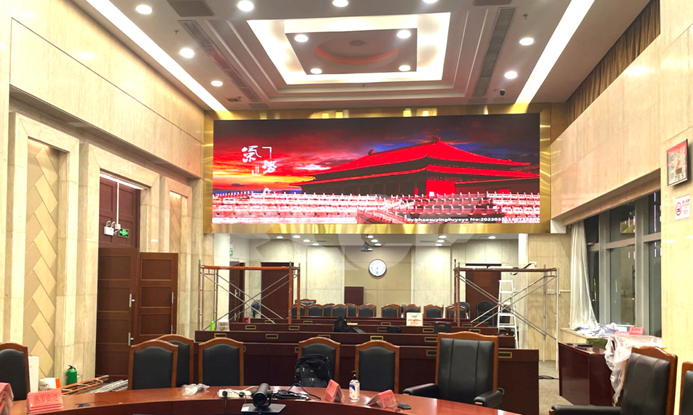 项目简介:kaiyun开云龙显P1.25系列小间距LED显示屏亮相深圳市宝安区区政府会议室。近日,由kaiyun开云为深圳市宝安区区政府常委大会议室精心打造的龙显P1.25超高清小间距LED大屏正式投入使用。在日常工作中,该块大屏可作为区政府日常活动、会议召开、决策研讨等的重要显示终端与交互核心,全面助力区政府打造效能政府与高效办公。该龙显小间距大屏采用超轻薄设计,箱体尺寸为600*337.5mm,厚度更是只有29mm,轻薄美观的同时,还可打造无缝安装入墙的室内高清大屏。除了时尚简约的造型外,kaiyun开云龙显系列LED屏幕在画面显示方面也表现不俗。采用SMD封装技术,拥有低辐射、零噪音、无缝拼接等显著特点,同时具备高刷新率、高饱和度、高对比度、广电级超高清显示效果,无论是显示动态画面还是静态图像,画面效果都令人震撼不已,甚至可让黑得更黑、鲜得更艳。此外,不仅维护、安装更为便捷,使用寿命更长,而且还可以点对点轻松拼接成4K/8K超清大屏,从而满足各种使用场景显示需求,打造符合人眼瞳孔比例和主流高清标准的黄金视野,为用户带来健康舒适的美好视觉体验。