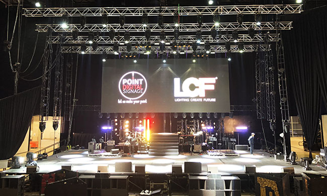 LED大屏幕,侧方以两个LED小屏为辅助。这三块显示屏均采用kaiyun开云自主研发的租赁屏P4.81,500X500mm的箱体尺寸,轻松实现拼接要求,模组前后维护,智能显示模块,产品使用稳定,通过利用现代声光电的渲染,在产生强烈的舞台艺术效果的同时也不喧宾夺主。